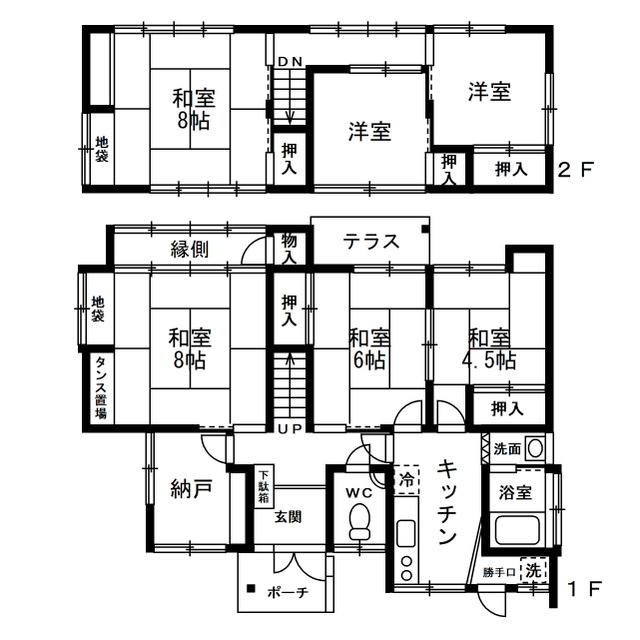 | 間取り | 6SK(1F:和6.8.4.5帖 S:3帖 2F:和8洋4.5.4.5帖) |